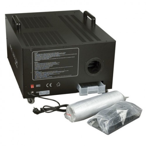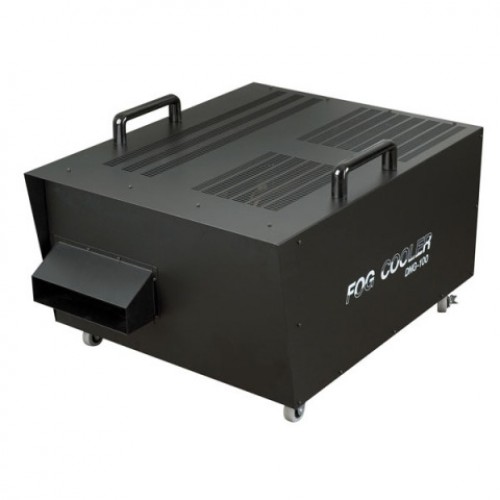 When connected to any fog machine, the DNG-100 Fog Cooler produces a low- lying smoke whose effect is virtually indistinguishable from that created by dry ice. The DNG-100 converts normal fog to a low-lying cloud of dense, white fog. This is accomplished by cooling the temperature of the fog produced by any regular fog machine to a point where it falls to the ground. The DNG-100 is extremely easy to operate as there are no external controls on the machine. Simply plug the unit in and place the fog conducting hose from the output of any fog machine to the input of the DNG-100. Just plug in the unit, it works immediately. The volume of fog produced is controlled by the fog machine that the DNG-100 is attached to. With the addition of the optional second fog conducting hose, the ground fog can be placed anywhere within 10m of the DNG-100 output nozzle.